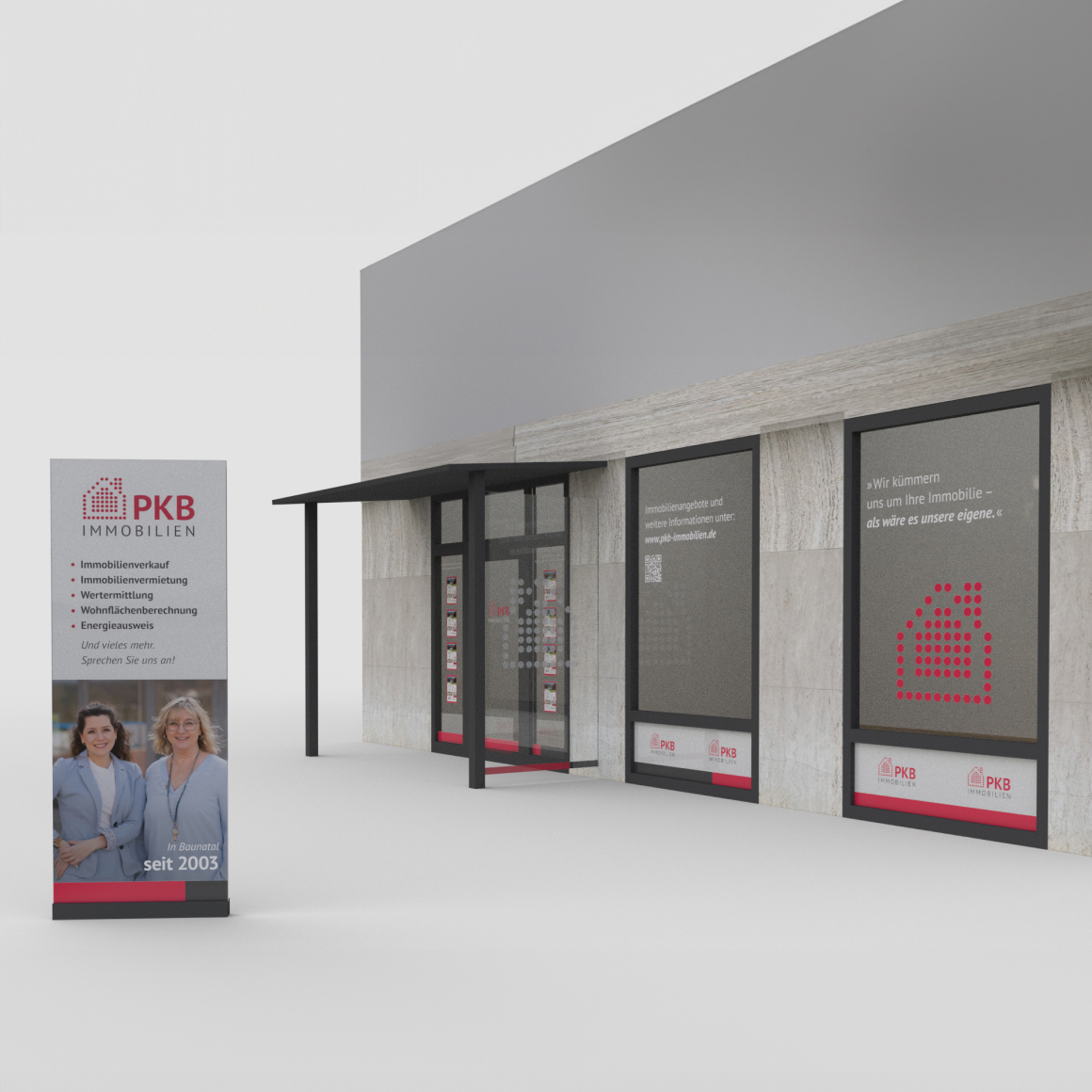 Seit über zwei Jahrzehnten steht PKB Immobilien in Baunatal für Verlässlichkeit und Erfahrung. Mit dem Umzug in ein größeres Büro ergab sich die Gelegenheit, den Außenauftritt neu zu denken und die Werte des Unternehmens in ein zeitgemäßes Erscheinungsbild zu übersetzen.